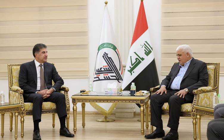 هاوڵاتی نێچیرڤان بارزانى، سهرۆكی ههرێمی كوردستان و فالح فهییاز، سهرۆكى دهستهى حهشدى شهعبى كۆبونهوه و رایانگهیاند، دهبێت عێراق نهكهوێته ناو ئاڵۆزییهكانى ناوچهكهوه و پاراستنى ئارامى و سهقامگیرى و بهرژهوهندیى باڵاى وڵات، ئهولهویهتى ههموان بێت. سەرۆکایەتیی هەرێمی کوردستان ئەمڕۆ یەکشەممە، سەبارەت بە کۆبونەوەکە ڕایگەیاند، "له كۆبوونهوهكهدا دۆخى ئهمنيى عێراق و ههڕهشه و مهترسييهكانى تيرۆر و هێرش و پهلامارهكانى داعش بۆ سهر هێزه چهكدارهكان و هێزه ئهمنييهكانى عێراق و هاووڵاتييان، دوايين پێشهاتهكانى شهڕ و ئاڵۆزيیهكان و كاريگهرى و لێكهوتهكانى بهسهر ناوچهكهوه، تاوتوێ كران." ئاماژه بهوهشكراوه، ههردولا جهختیان لهوهكردهوه، كه "دهبێت عێراق نهكهوێته ناو ئاڵۆزییهكانى ناوچهكهوه و پاراستنى ئارامى و سهقامگیرى و بهرژهوهندیى باڵاى وڵات، ئهولهویهتى ههموان بێت". ههروهها سەرۆکایەتیی هەرێمی کوردستان ئاماژەی بەوەشکردووە، کە سەرۆکی هەرێمی کوردستان و سەرۆکی دەستەی حەشدی شەعبی هاوڕا بوون كه "بهئامانجگرتنى پێشمهرگه و هێرشه درۆنييهكان لهسهر ههرێمى كوردستان، زيان به ئارامى و سهقامگيريى عێراق و ههرێمى كوردستان دهگهيهنێت." ئهوهشخراوهتهڕو، پهیوهندییهكانى ههولێر و بهغدا و پهیوهندییهكانى عێراق لهگهڵ وڵاتانى دراوسێ و ناوچهكه، تهوهرێكى دیكهى كۆبونهوهكه بوه نێوان نێچیرڤان بارزانی و فالح فهیاز بو. دەقی ڕاگەیەندراوەکە: سهرۆك نێچيرڤان بارزانى لهگهڵ سهرۆكى دهستهى حهشدى شهعبى كۆبووهوه بهيانيى ئهمڕۆ يهكشهممه، 2024/1/14 له دووهم ڕۆژى سهردانيدا بۆ بهغدا، بهڕێز نێچيرڤان بارزانى، سهرۆكى ههرێمى كوردستان، لهگهڵ بهڕێز فالح فهيياز سهرۆكى دهستهى حهشدى شهعبى، كۆبووهوه. له كۆبوونهوهكهدا دۆخى ئهمنيى عێراق و ههڕهشه و مهترسييهكانى تيرۆر و هێرش و پهلامارهكانى داعش بۆ سهر هێزه چهكدارهكان و هێزه ئهمنييهكانى عێراق و هاووڵاتييان، دوايين پێشهاتهكانى شهڕ و ئاڵۆزيهكان و كاريگهرى و لێكهوتهكانى بهسهر ناوچهكهوه، تاوتوێ كران. ههردوولا جهختيان لهوه كردهوه كه دهبێ عێراق نهكهوێته ناو ئاڵۆزييهكانى ناوچهكهوه و پاراستنى ئارامى و سهقامگيرى و بهرژهوهنديى باڵاى وڵات، ئهولهويهتى ههمووان بێت. ههروهها هاوڕا بوون كه بهئامانجگرتنى پێشمهرگه و هێرشه درۆنييهكان لهسهر ههرێمى كوردستان، زيان به ئارامى و سهقامگيريى عێراق و ههرێمى كوردستان دهگهيهنێت. پهيوهندييهكانى ههولێر ـ بهغدا و پهيوهندييهكانى عێراق لهگهڵ وڵاتانى دراوسێ و ناوچهكه، تهوهرێكى ديكهى كۆبوونهوهكه بوو.