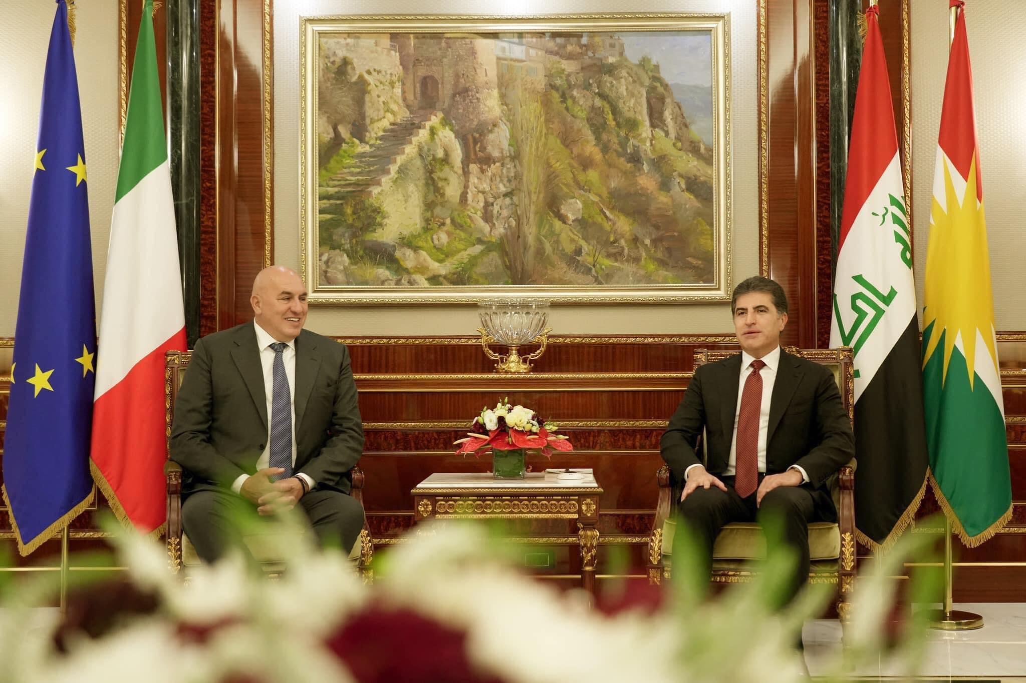 هاوڵاتی سهرۆكى ههرێمى كوردستان لهگهڵ وهزيرى بهرگريى ئيتاليا گویدۆ کرۆسێتۆ كۆبووهوه و پهيوهندييهكانى ئيتاليا لهگهڵ عێراق و ههرێمى كوردستان و دوايين سهردانى نێچيرڤان بارزانى بۆ ڕۆمایان تاوتوێکرد. له كۆبوونهوهكەدا، بەگوێرەی راگەیێندراوی سەرۆکایەتیی ههرێمى كوردستان، برهودان به پهيوهندييهكانى ئيتاڵيا لهگهڵ عێراق و ههرێمى كوردستان، دوايين سهردانى نێچيرڤان بارزانى بۆ رۆما، دۆخى سياسيى عێراق و پهيوهندييهكانى ههولێر - بهغدا، رۆڵى ئيتاڵيا له هاوپهيمانيى نێودهوڵهتيى دژى داعش و دوايين پێشهاتهكانى بهرهنگاربوونهوهى تيرۆر تاوتوێ كران. لە ڕاگەیەندراوەکەی سەرۆکایەتی هەرێمدا هاتووە " نێچيرڤان بارزانى سوپاس و پێزانينى ههرێمى كوردستانى بۆ رۆڵ و پشتگيريى سهربازيى ئيتاڵيا له عێراق و ههرێمى كوردستان له شهڕى دژى داعشدا دووپاتكردهوه و خواستى ههرێمى كوردستانى بۆ برهودان بە پهيوهندييهكانى لهگهڵ ئيتاڵيا دهربڕى، بهتايبهتيش فراوانكردنى هاريكاريى هاوبهش له بوارى ئهمنيدا." ههروهها سهرۆكى ههرێمى كوردستان سوپاسى رۆڵى هێزهكانى ئيتاڵياى له ههرێمى كوردستان كرد بۆ مهشق و راهێنانيان به پێشمهرگه. وەک سەرۆکایەتیی ههرێمى كوردستان دەڵێت ،"لاى خۆيهوه، وهزيرى بهرگريى ئيتاڵيا وێڕاى دهربڕينى بهردهواميى پشتگيريى سهربازيى وڵاتهكهى بۆ عێراق و ههرێمى كوردستان و پێزانينى ئيتاڵيا بۆ رۆڵى ههرێمى كوردستان له تێكشكاندنى داعشدا، دووپاتیكردهوه كه وڵاتهكهى به بايهخهوه له پهيوهندييهكانى لهگهڵ عێراق و ههرێمى كوردستان دهڕوانێت و ئارامى و سهقامگيريى ههرێمى كوردستان و عێراقى به گرنگ بۆ ناوچهكه و جيهان له قهڵهم دا." باسلەوەشکراوە لە کۆبونەوەکەدا چهند پرسێكى وەک، وەک لێكهوتهكانى شهڕ له ئۆكراينا و دوايين پێشهاتهكانى ناوچهكه بهگشتى، تهوهرێكى ديكهى كۆبوونهكه بوو كه تێيدا باڵيۆزى ئيتاڵيا له عێراق، كۆنسووڵ و فهرماندهى هێزهكانى ئيتاڵيا له ههرێمى كوردستان ئامادهبوون.