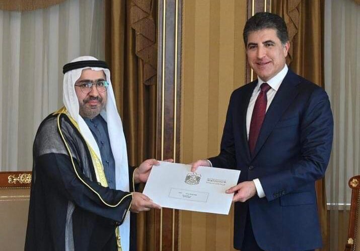 هاوڵاتی کۆنسوڵی گشتیی ئیمارات لە هەرێمی کوردستان ئەمڕۆ یەکشەممە سەردانی نێچیرڤان بارزانی کرد و بانگهێشتنامەیەکی فەرمیی سەرۆکی وڵاتەکەی بە سەرۆکی هەرێمی کوردستان گەیاند بۆ سەردانیکردنی ئیمارات. بەگوێرەی راگەیەندراوێکی سەرۆکایەتیی هەرێمی کوردستان، لە کۆبوونەوەیەکدا؛ ههردوولا جهختيان له پتهوكردنى پهيوهندييهكانى عێراق و ههرێمى كوردستان لهگهڵ ئيمارات و فراوانكردنى هاريكاريى هاوبهشى نێوانيان كردهوه و دۆخى سياسى و ئابووريى عێراق و ههرێمى كوردستان و پهيوهندييهكانى ههولێر بهغدايان تاوتوێ كرد. سەرۆکایەتیی هەرێمی کوردستان لەبارەی ناوەڕۆکی بانگهێشتنامەکە دەڵێت، سەرۆکی ئیمارات "وێڕاى سڵاو و رێز بۆ سهرۆك نێچيرڤان بارزانى، ئاماژهى به خواست و گرنگيدانى وڵاتهكهى به پهيوهندييهكانى لهگهڵ ههرێمى كوردستان و هاريكاريى هاوبهشى نيوانيان له بواره جياكاندا كردووه، ههروهها بۆ گۆڕينهوهى بيروڕا دهربارهى بهرژهوهندييه هاوبهشهكانى نێوان ههردوولا، چاوى لهوهيه له ئيمارات پێشوازى له سهرۆك نێچيرڤان بارزانى بكات." نێچیرڤان بارزانی رایگەیاند، "به خۆشحاڵييهوه بانگهێشتنامهكهى" سەرۆکی ئیمارات بۆ وڵاتەکە قبووڵ دەکات و پێیوایە پەیوەندیی نێوان هەرێمی کوردستان و ئیمارات لە قۆناخێکی باش و گرنگ دایە. لە بەشێکی دیکەی کۆبوونەوەکەدا؛ نێچیرڤان بارزانی و کۆنسوڵی گشتیی ئیمارات لە هەرێمی کوردستان باسیان لە "پرسى بودجه و ياساى نهوت و گاز لهنێوان حكومهتى ههرێمى كوردستان و حكومهتى فيدراڵيى عێراق و دۆخى شنگال"ـیش کردووە.
