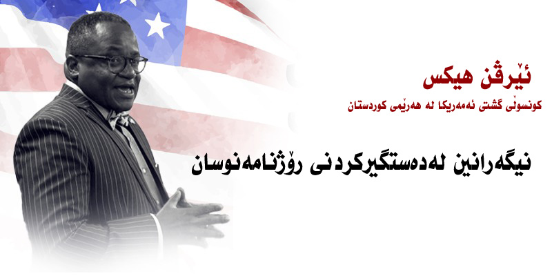 هاوڵاتی كونسوڵی گشتی ئهمهریكا له ههرێمی كوردستان نیگهرانه له دهستگیركردن و ڕاگرتنی ڕۆژنامهنوسان بهتۆمهتێك كه پهیوهسته بهكاری ڕۆژنامهنوسیانهوه. دهقی پهیامهكهی ئێرڤن هیكس كونسوڵی گشتی ئهمهریكا له ههرێمی كوردستان برهودان به دیموكراسی و مافهكانی مرۆڤ و ئازادی ڕاگهیاندن له كاره ههره له پێشهكانی كونسوڵخانهی گشتی ئهمهریكان له ههرێمی كوردستانی عێراقدا. ئهو كاره له پێشانه به شیوهیهكی كاریگهر به دیدێن له ڕێی كاردكردنهوه له گهڵ هاوبهشهكانمان له حكومهت و كۆمهڵگای مهدهنی و ئهو پێكهاتانهی بهپێی پێویست نوێنهرایهتی نهكراون و ڕێكخراوه دینیهكان و ههروهها دهزگاكانی ڕاگهیاندن بۆ هاندانی حكومهتی ههرێمی كوردستان له دڵنیابوون لهوهی كه بنهما و بهها دیموكراسیهكان بناغهن بۆ میدیای ئازاد و ئازادی كۆبونهوهی ئاشتیانهو ڕێگرتن له توندوتیژی لهسهر بنهمای جێندهری و دهرفهتی یهكسان بۆئهو كۆمهڵگایانهی كه بهپێی پێویست نوێنهرایهتی نهكراون و لێپرسینهوه لهوانهی له توندوتیژی دژی ژنان تێوهگلاون. كونسوڵخانهی گشتی ئهمهریكا له ههرێمی كوردستانی عێراقدا نیگهرانه له دهستگیركردن و ڕاگرتنی ڕۆژنامهنوسان بهتۆمهتێك كه پهیوهسته بهكاری ڕۆژنامهنوسیانهوه. نیگهرانیهكانمان سهبارهت بهو ههواڵانهشه كه باس له دهستگیركردنی ڕۆژنامهنوسان بهبێ هۆ و بهبێ دادگاییكردنی دادپهروهرانهو ههروهها پهلاماردان و ههڕهشه و یانیش پشكنینی ئامێره ئهلیكترۆنیهكانیان به بێ ههبوونی فهرمان دهكهن. بهههمان ڕاده نیگهرانی ئهوهشین كه ههندێك ڕۆژنامهنوس و كهناڵی ڕاگهیاندنی دیاریكراو، بهتایبهتیش ژنان و ئهوانهی سهر بهو كۆمهڵگایانهن كه بهپێی پێویست نوێنهرایهتی نهكراون، رێگهیان پێنادریت بهشداری كۆنگرهی ڕۆژنامهنوسی ڕهسمی بكهن و یانیش زانیاری یاسایی دژیهكیان پێدهدرێت كه ئاستهنگ دهخاته بهردهم پرۆسهی خۆ تۆماركردنیان. چاوهڕوانیمان له حكومهتی ههرێمی كوردستان جێبهجێكردنی یاسای بهدهستهێانی زانیاریه بۆ هاندانی بهرپرسیارێتی و بههێزكردنی توانای ڕۆژنامهنوسان بۆ بهدهستهێانی زانیاری له وهزارهتهكانهوه.