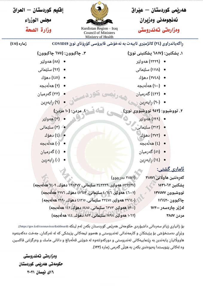 دهقى راگهیهندراوى وهزارهتى تهندروستى حکومهتى ههرێم: