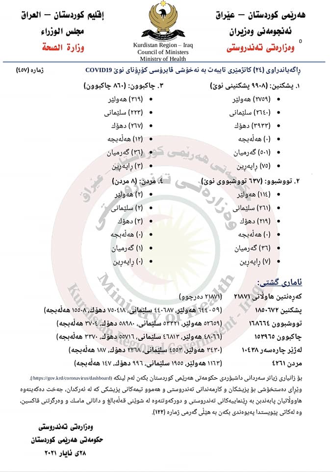 دهقى راگهیهندراوى وهزارهتى تهندروستى حکومهتى ههرێم: