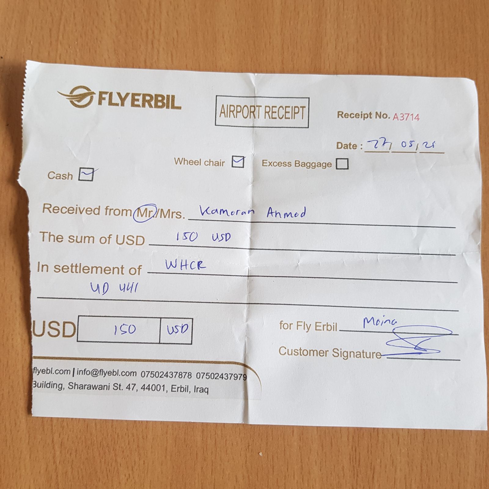 ههروهها دهشڵێت:" دوو براى خۆم لهگهڵم بووهو پێویستى بهو کۆمپانیا نهبووه که ئهو پارهیهى لێسهندووم، کۆمپانیاکهش ناوى (Flyerbil) فلای-ئهربیل-ه".