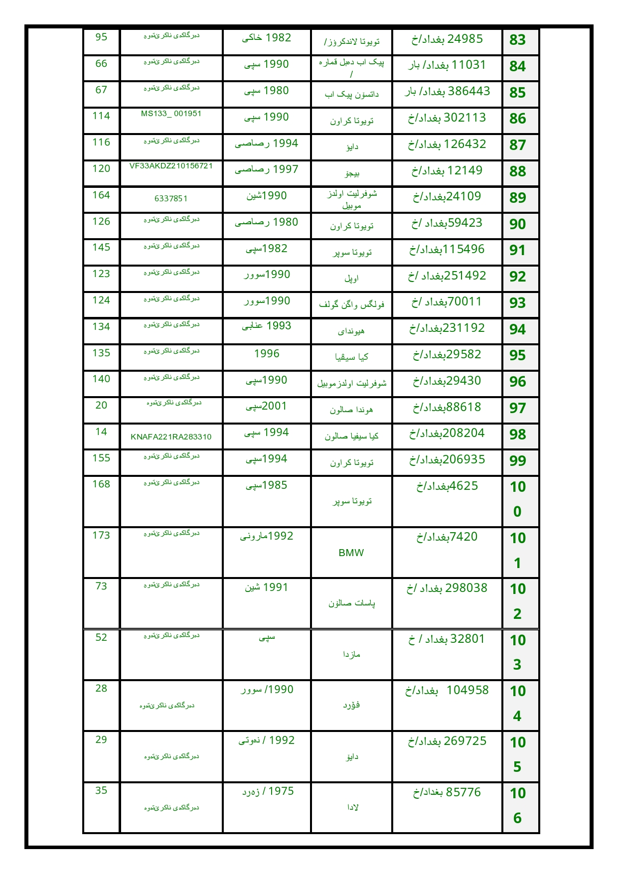 سێیهم: دهبێت كڕیار لهماوهی (20) ڕۆژدا سهرجهم ئۆتۆمبێلهكان به سكراب (به 3 پارچه ) بباته دهرهوهی گهراجهكه و پاش تێپهڕبونی ئهو ماوهیه ڕۆژانه بڕی (500,000)پێنج سهد ههزار دینار سزای دواكهوتنی لێ وهر دهگیرێت.