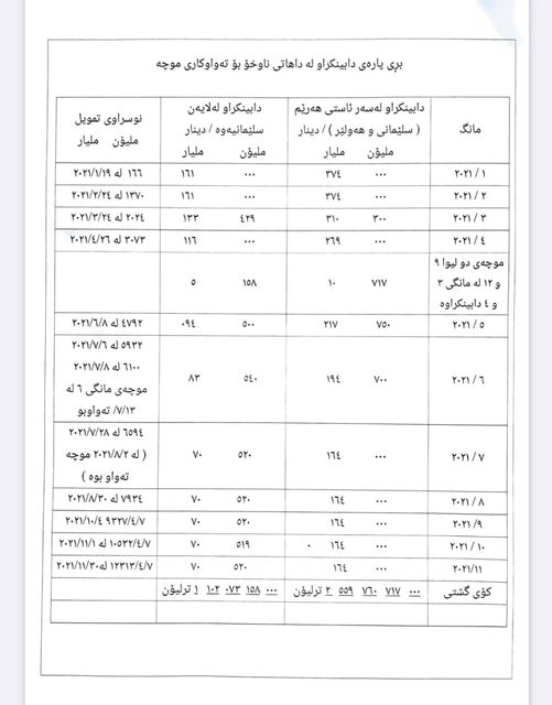 ئەمەی خوارەوە پارەی دابینكراوی ١١ مانگی ٢٠٢١ە: