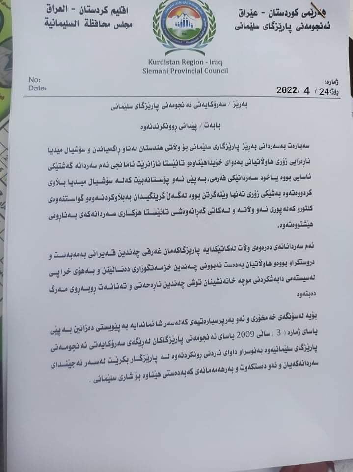بە نوسراوێکی فەرمی، چەند ئەندامێکی ئەنجومەنی پارێزگای سلێمانی واژۆیان کۆکردووەتەوە و داوای روونکردنەوە لە هەڤاڵ ئەبوبەکر دەکەن و دەڵێن، "سەردانی پاریزگار بۆ هیندستان، نارەزایی زۆری لە ناو سۆشیال میدیا و راگەیاندن و لەناو هاوڵاییان بەدوایخۆیدا هێنا، تا ئێستا نازانرێت ئامانج لەم سەردانە گەشت بووە یان سەردانێکی فەرمی."