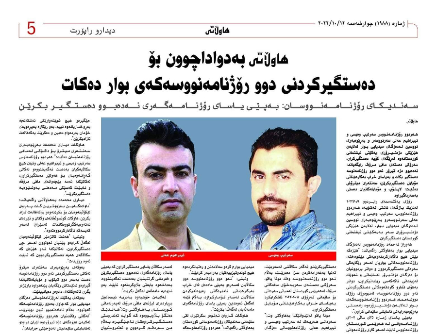 بهپێی یاسای ژماره 35ی ساڵى 2007ى رۆژنامهوانی له ههرێمی کوردستان رۆژنامهنووس نابێت لهسهر کاری رۆژنامهوانی دهستگیربکرێتو ئهگهر سکاڵاشی لهسهربێت، تهنیا بهغهرامهکردن سزا دهدرێت، بهڵام ئهو دوو رۆژنامهنووسه وهک مونا یاقو، سهرۆکی دهستهی سهربهخۆی مافهکانی مرۆڤ لهههرێمی کوردستان لهمیانی سهردانی بۆ سلێمانی لهڕۆژی 11-10-2022 ئاشکرایکرد بهیاسای خراپ بهکارهێنانی مۆبایل دهستگیرکراون.