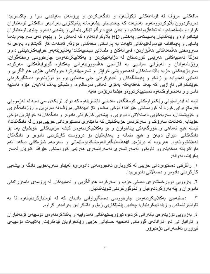 3. دەستبەجێ یەکلاییکردنەوەی چارەنووسی دەستگیراوانی بادینان كە لە تۆمتبارکردنیانەوە تا بە تاوانبارناساندن و زیندانییکردنیان؛ چەندین پێشێلكاریی زەق و ئاشكرایان بەرامبەر کراوە.