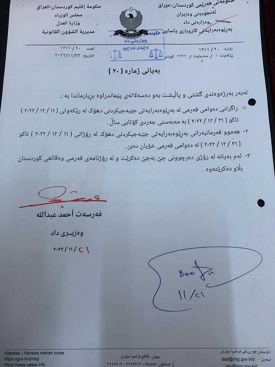 پارێزەرێک لە دهۆک ڕایگەیاند دەوامی بەرێوەبرایەتی جێبەجێکردن بۆماوەی 20رۆژ ڕادەگیرێت.
