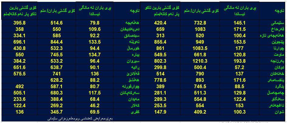 وێنەی ڕێژەی باران بارین لەسەر جەم ناوچەکانی سلێمانی و دەوروبەری:
