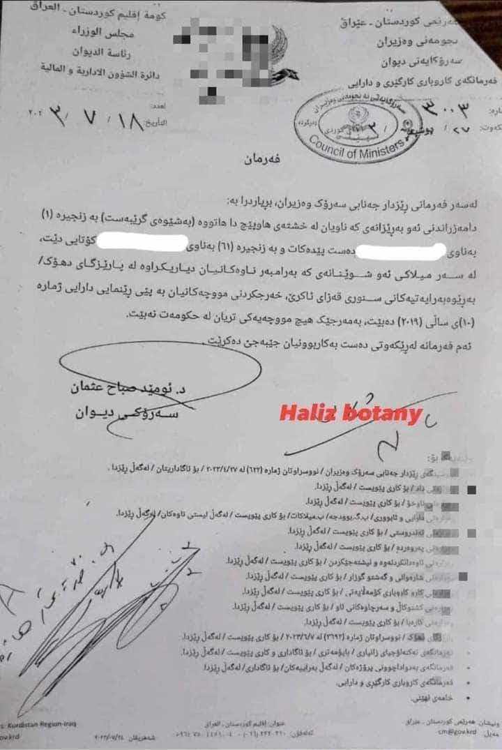 دەقی نوسراوی دامەزراندی 61 کەسەکە لە بەروارەکەی دەگەڕێتەوە بۆ 18ی تەمووزی 2023: