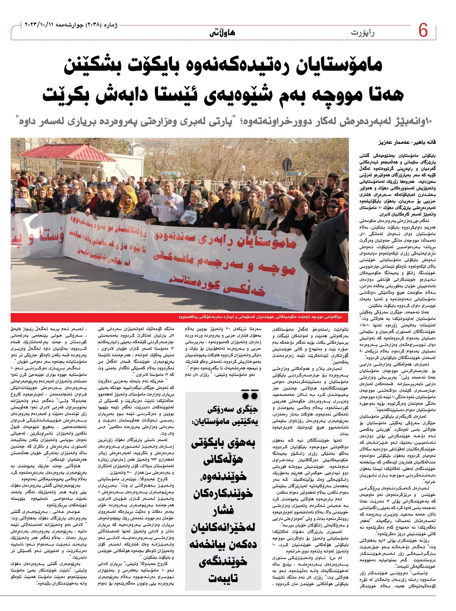 لەسنوری پارێزگای دهۆك لەكاتێكدا مامۆستایانی وانەبێژ بۆ داواكردنی مووچە بایكۆتی هۆڵەكانی خوێندنیان كرد، 10 وانەبێژ لەوانە وتنەوە دوورخرانەوە