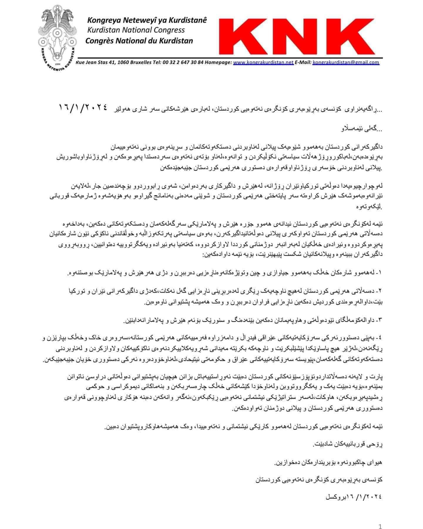 دەقی ڕاگەیەنراوی كۆنسهی بهڕێوهبهری کۆنگرەی نەتەوەیی کوردستان، لەبارەی هێرشەکانی سەر شاری هەولێر: