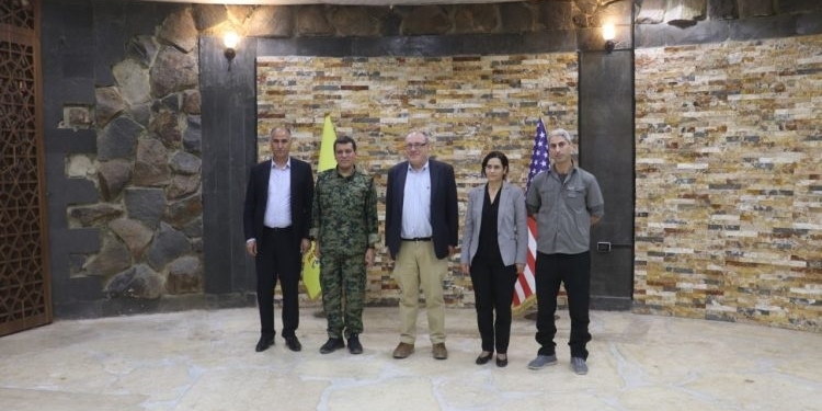 هاوڵاتی فەرماندەی گشتی هێزەكانی هەسەدە لەگەڵ جێگری یاریدەدەری وەزیری دەرەوەی ئەمریكا و وەفدێكی وەزارەتی دەرەوەی ئەمریكا كۆبوویەوە و چەند تەوەرێكییان تاوتوێكرد. دوێنێ، مەزڵوم كۆبانێ، فەرماندەی گشتی هێزەکانی سوریای دیموکرات لەگەڵ بەرپرسانی وەزارەتی دەرەوەی ئەمریكا بە سەرۆکایەتی ئی سان گۆلدریچ، جێگری یاریدەدەری وەزیری دەرەوەی ئەمریكا بۆ كاروباری ڕۆژهەڵاتی ناوەڕاست كۆبوویەوە. لەكۆبوونەوەكەدا، هەردوولا کۆبوونەوەیەکی درێژیان لەسەر بارودۆخی ئەم دواییەی هەرێم و سوریا ئەنجامدا و وەفدی ئەمریکا جەختیان لەسەر گرنگی پاراستنی ڕێکەوتنی ئاگربەست لە ڕۆژئاوا و سوریا بەگشتی و بەردەوامی هەوڵەکانی شکستپێهێنانی داعش کردەوە. هەروەها باس لە گرفتە ئەمنی و ئابوورییەکانی باکوور و ڕۆژهەڵاتی سوریا و ڕێگاکانی زیادکردنی پشتیوانی مرۆیی کرا، بۆ تێپەڕاندنی کاریگەریەکانی شەڕ و گەشەسەندنی ژێرخانی ئابووری بۆ دەستەبەرکردنی ئاسایش و سەقامگیری.