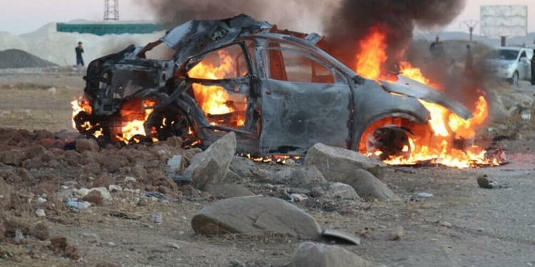 هاوڵاتی فڕۆکەیەکی بێفڕۆکەوانی دەوڵەتی تورکیا لە کۆبانێ ئۆتۆمبێلێکی سڤیلی بۆردومان کرد و بە هۆیەوە سێ هاوڵاتی سڤیل شەهید بوون. ئێوارەی ئەمڕۆ دەوڵەتی تورکیا بە فڕۆکەیەکی بێفڕۆکەوان لەسەر رێگای کۆبانێ و حەلەب هێرشی کردە سەر ئۆتۆمبێلێکی سڤیل و لە ئەنجامدا سێ هاوڵاتی سڤیل شەهید بوون. رۆژی چوارشەممەی ڕابردوو فڕۆکەکانی دەوڵەتی تورکیا لە شاری کۆبانێ هێرشیان کردە سەر ئۆتۆمبێلێکی سڤیل و لە ئەنجامد دوو هاوڵاتی سڤیل شەهید بوون و سێ کەسی دیکەش برینداربوون.