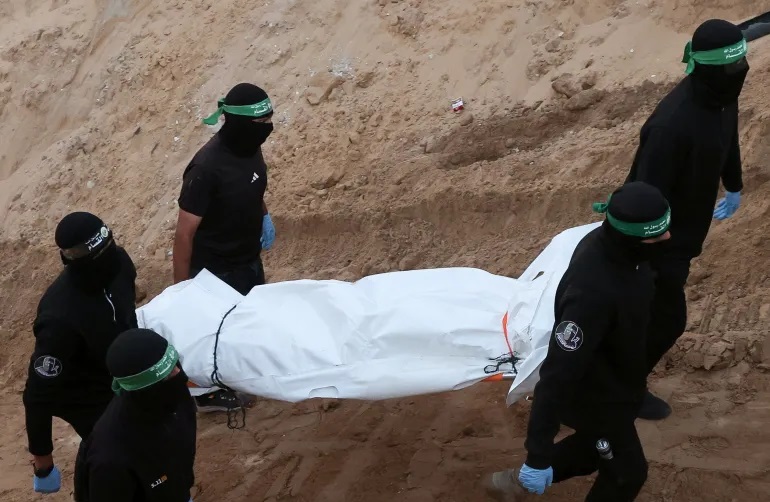 دوای ئەوەی شەوی رابردوو خاچی سوری نێودەوڵەتی روفاتی سێ تەرمی لە حەماسەوە وەرگرت و ڕادەستی ئیسرائیلی کرد، پەیمانگای پزیشکی دادیی ئیسرائیل رایگەیاند کە پاش پشکنین دەرکەوتووە ئەو روفاتانە هی هیچ کام لە بارمتە کوژراوەکان نین. شەوی هەینی، خاچی سووری نێودەوڵەتی لەسەر داوا و بە رەزامەندیی هەردوو لایەن، روفاتی سێ تەرمی گواستەوە بۆ لای دەسەڵاتدارانی ئیسرائیل. پاش گەیشتنیان، روفاتەکان بۆ پشکنین رەوانەی پەیمانگای پزیشکی دادیی ئیسرائیل کران تا ناسنامەیان دیاری بکرێت. بەڵام، ئەنجامی پشکنینەکان دەریخست کە ئەو روفاتانە هی هیچ کام لەو 11 بارمتە کوژراوەی کە لە کەرتی غەززە دەستبەسەرن، نین. لایەنە پەیوەندیدارەکان لە ئیسرائیل رایانگەیاندووە کە پرۆسەی دیاریکردنی ناسنامەی تەرمەکان لەژێر بەرپرسیارێتی ئەواندایە و بەردەوام دەبن لە کارەکانیان. دوای دەستپێکردنی ئاگربەستەکەی ئەم مانگە، گرووپەکە هەر 20 بارمتە زیندووەکەی ئازاد کرد و دەستی بە پرۆسەی گەڕاندنەوەی 28 بارمتە کوژراوەکان کرد. ئیسرائیل حەماس بە پێشێلکردنی رێککەوتنەکە تۆمەتبار دەکات، بەوەی بە خێرایی پێویست تەرمەکان ناگەڕێنێتەوە، بەڵام حەماس دەڵێت، پێویستیان بە کاتە بۆ دۆزینەوەی پاشماوەکان لەژێر داروپەردووی غەززەدا. پێشتر کەتیبەکانی عیزەدین قەسام، باڵی سەربازیی حەماس رایانگەیاند، نیوەڕۆی رۆژی پێنجشەممە دوو تەرم دەگەڕێننەوە. بە هەژمارکردنی ئەم دوو تەرمە نوێیە، چەکدارەکان تاوەکو ئێستا پاشماوەی 17 لەو 28 بارمتە کوژراوەیان رادەستکردووەتەوە، کە حەماس بەپێی رێککەوتنە نێوەندگیرییەکەی ئەمریکا رازی ببوو بیانگەڕێنێتەوە.