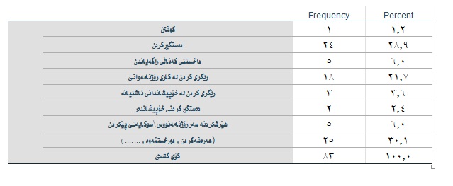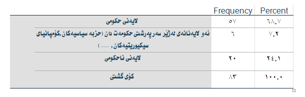(59) پێشێڵکاری بهرانبهر به رۆژنامهنوسان رویداوه که دهکاته (71.1%), وه (7) پێشێڵکاری بهرانبهر به (دهزگای راگهیاندن و رێکخراوهکان) رویداوه که دهکاته (8.4%), وه (4) پێشێڵکاری بهرانبهر به خۆپیشاندانهکان رویداوه که دهکاته ( 4,8%), وه 2 پێشێڵکاری بهرانبهر به قوتابیان رویداوه که دهکاته (2,4%), وه (11) پێشێڵکاری بهرانبهر به چاڵاکوانانی مهدهنی و ئهندامانی حزبی سیاسی و نوسهران و ..... رویداوه که دهکاته (13,3%).