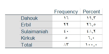 پێشێلکاریهکان پۆلێن کراون به پێ ی سنوری پارێزگاکانی ( دهۆک , ههولێر , سلێمانی و کهرکوک), له سنوری پارێزگای دهۆک 16 پێشێڵکار ی رویداوه که دهکاته ( 19.3 %), وه له پارێزگای ههولێر 22 پێشێڵکاری رویداوه که دهکاته (26.5 %) , له پارێزگای سڵێمانی 40 پێشێڵکاری رویداوه که دهکاته (48.2 %) وه له کهرکوک 5 پێشێڵکاری رویداوه که دهکاته (6 % ) .کو کۆی گشتی پێشێلکاریهکان دهکاته 83 .