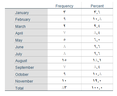 له کۆی 83 پێشێڵکاری کهمترین پێشێڵکاری له مانگی یهک دا (3) پێشێڵکاری بووه به رێژهی (3.6 %) وه زۆرترین پێشێڵکاری له مانگی ههشت دا (15) پێشێڵکاری بووه به رێژهی (18,1).