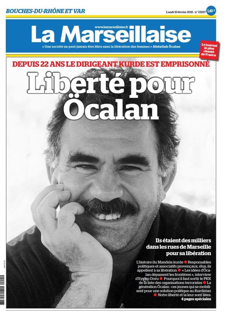 رۆژنامهى لا ماخسایى فهرهنسى لهبهرگى یهکهمى ژمارهى ئهمرۆیدا وێنهیهکهى گهورهى عهبدوڵا ئۆجهلان، رێبهرى پارتى کرێکارانى کوردستان(پهکهکه)ى داناوهو لهسهرى نوسراوه ئازادى بۆ ئۆجهلان.