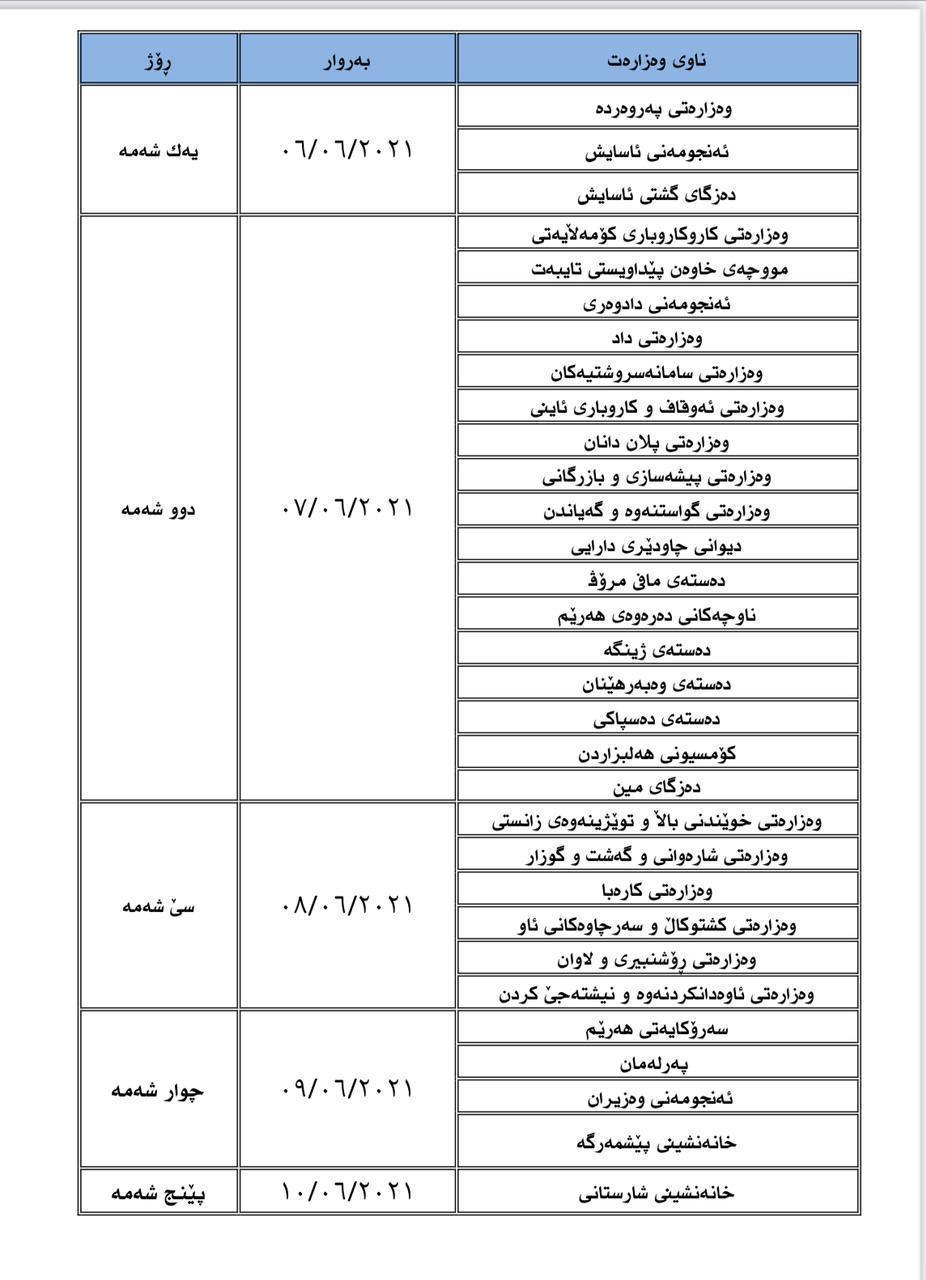 ئەمڕۆ شەش وەزارەت موچە وەردەگرێت