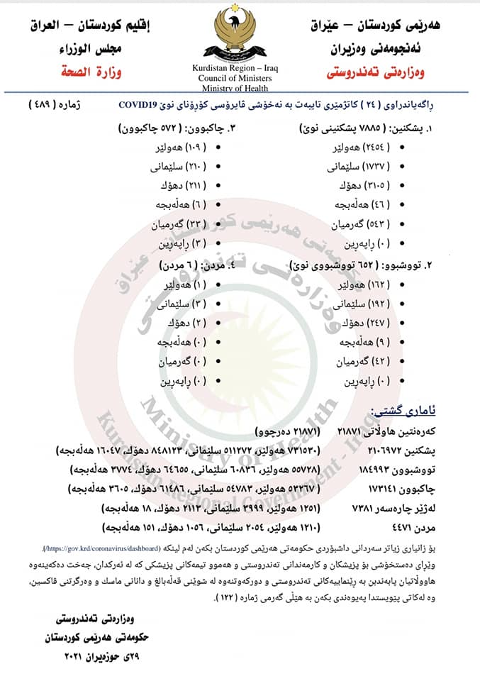دهقى راگهیهندراوى وهزارهتى تهندروستى حکومهتى ههرێم: