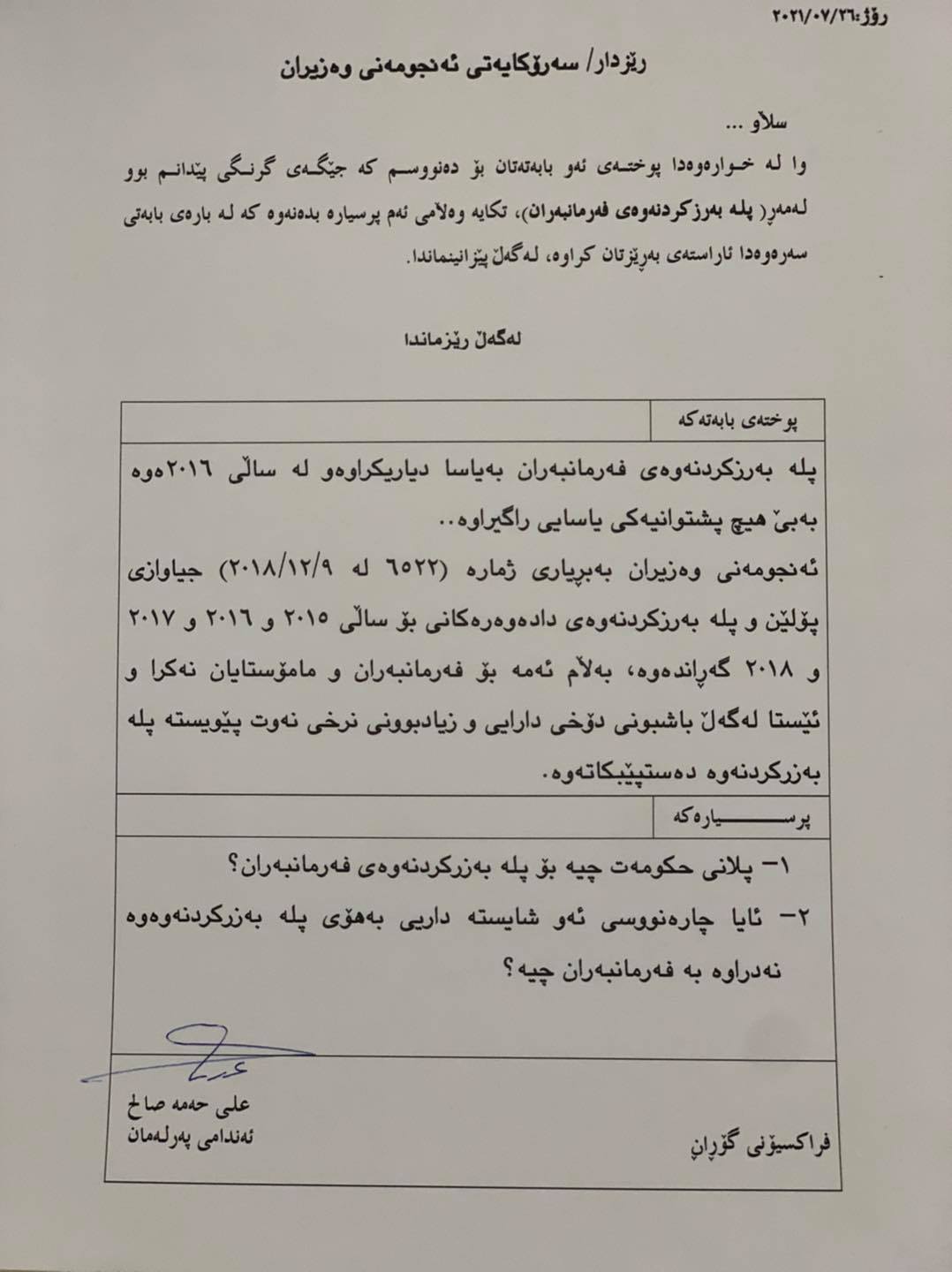 داوا له حکومهتى ههرێم دهکرێت پله بهرزکردنهوهى فهرمانبهران دهستپێبکاتهوه
