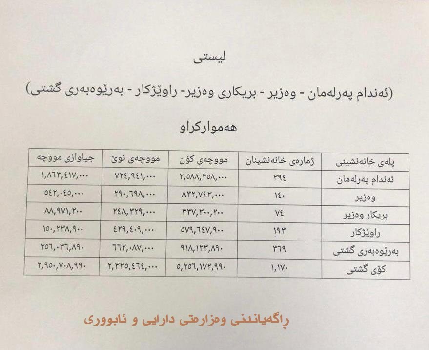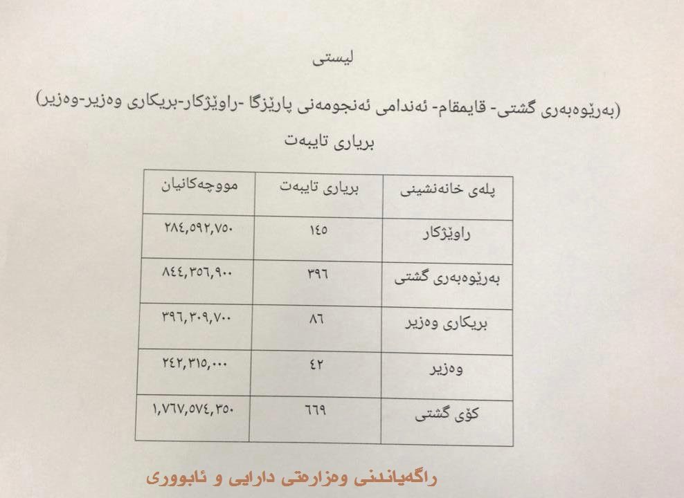 وەزارەتی دارایی لەبارەی راگرتنی موچەی پلەتایبەتییەکان زانیاری ورد ئاشكرادەكات
