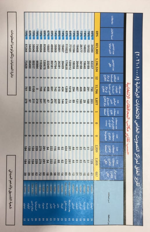 ئەوەش هاتوە، رێژەی بەشداریکردن ئەنبار 59%، کەربەلا 74%، نەجەف 69% و لە بەغدا-رەسافەش 62% ی دەنگدەران بەشداری پرۆسەکەیان کردوە.