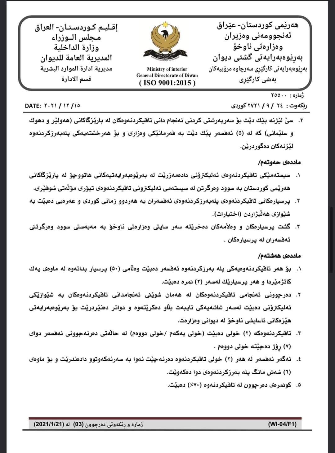 وەزارەتی ناوخۆی هەرێم ڕێنماییی پلەبەرزكردنەوە رادەگەیەنێت