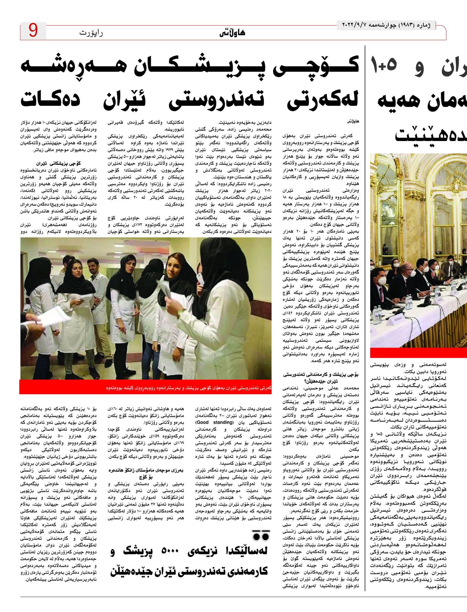 كەرتی تەندروستی ئێران بەهۆی كۆچی پزیشك و پەرستارانەوە رووبەڕووی كێشە بووەتەوەو بەوتەی بەرپرسانی ئەو وڵاتە ساڵانە چوار بۆ پێنج هەزار پزیشك و كارمەندی تەندروستیی وڵاتەكە جێدەهێڵن و لەئێستاشدا نزیكەی 20 هەزار پزیشك وازیان لەپسپۆڕیی و كارەكانیان هێناوە.