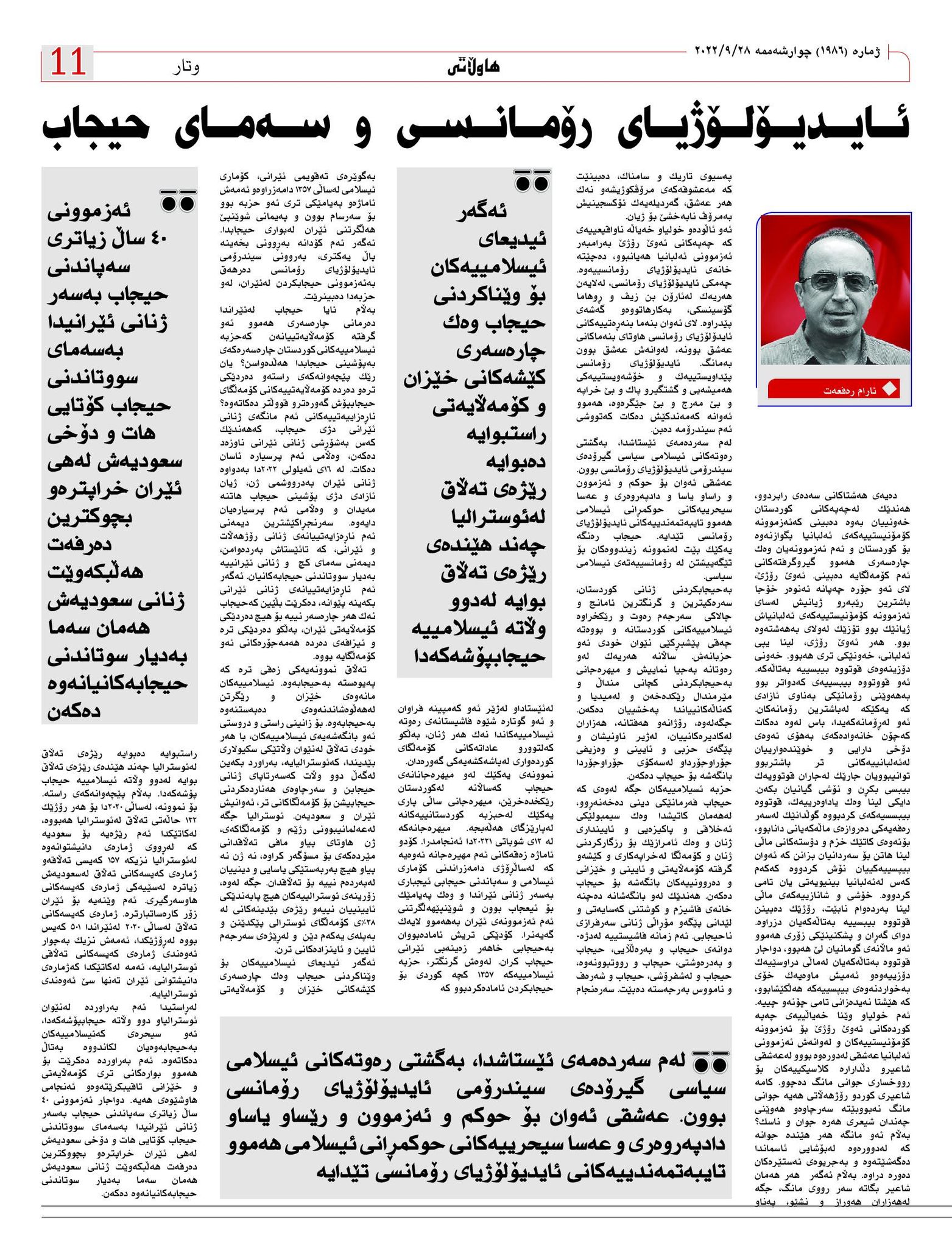 بەڵام ئایا حیجاب لەئێراندا دەرمانی چارەسەری هەموو ئەو گرفتە كۆمەڵایەتییانەن كەحزبە ئیسلامییەكانی كوردستان چارەسەرەكەی بەپۆشینی حیجابدا هەڵدەواسن؟ یان رێك پێچەوانەكەی راستەو دەردێكی ترەو دەردە كۆمەڵایەتییەكانی كۆمەڵگای حیجابپۆش گەورەترو قووڵتر دەكاتەوە؟ ناڕەزاییەتییەكانی ئەم مانگەی ژنانی ئێرانی دژی حیجاب، كەهەندێك كەس بەشۆڕشی ژنانی ئێرانی ناوزەد دەكەن، وەڵامی ئەم پرسیارە ئاسان دەكات. لە ١٦ی ئەیلولی ٢٠٢٢دا بەدواوە ژنانی ئێران بەدرووشمی ژن، ژیان ئازادی دژی پۆشینی حیجاب هاتنە مەیدان و وەڵامی ئەم پرسیارەیان دایەوە. سەرنجڕاكێشترین دیمەنی ئەم ناڕەزایەتییانەی ژنانی رۆژهەڵات و ئێرانی، كە تائێستاش بەردەوامن، دیمەنی سەمای كچ و ژنانی ئێرانییە بەدیار سووتاندنی حیجابەكانیان. ئەگەر ئەم ناڕەزایەتییانەی ژنانی ئێرانی بكەینە پێوانە، دەكرێت بڵێین كەحیجاب نەك هەر چارەسەر نییە بۆ هیچ دەردێكی كۆمەڵایەتی ئێران، بەڵكو دەردێكی ترە و ئیزافەی دەردە هەمەجۆرەكانی ئەو كۆمەڵگایە بووە.