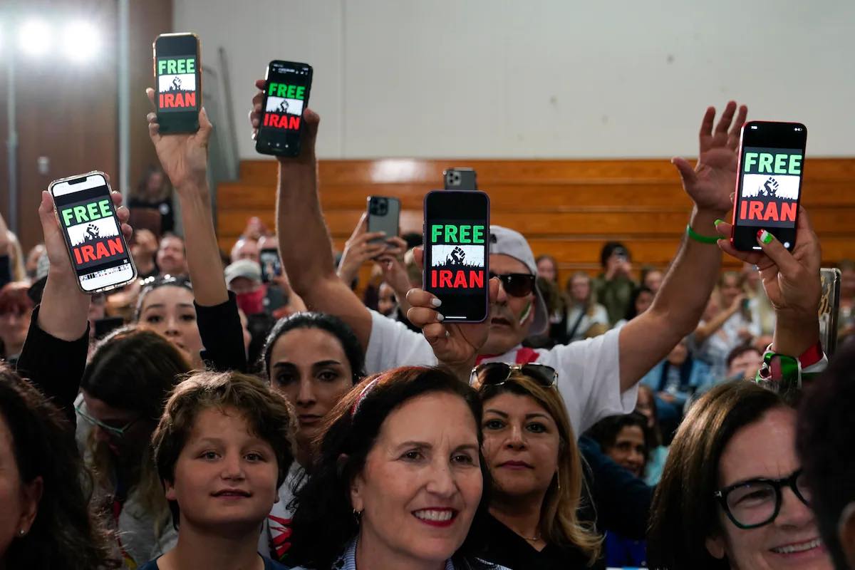 ئەم قسانەی بایدن لە کاتێکدا بوو ژمارەیەک لە ئامادەبوانی کەمپینەکە مۆبایلەکانیان بەرز کردبۆوە و وێنەی free iran واتە"ئێران ئازاد بکە" یان بەرز کردبۆوە.