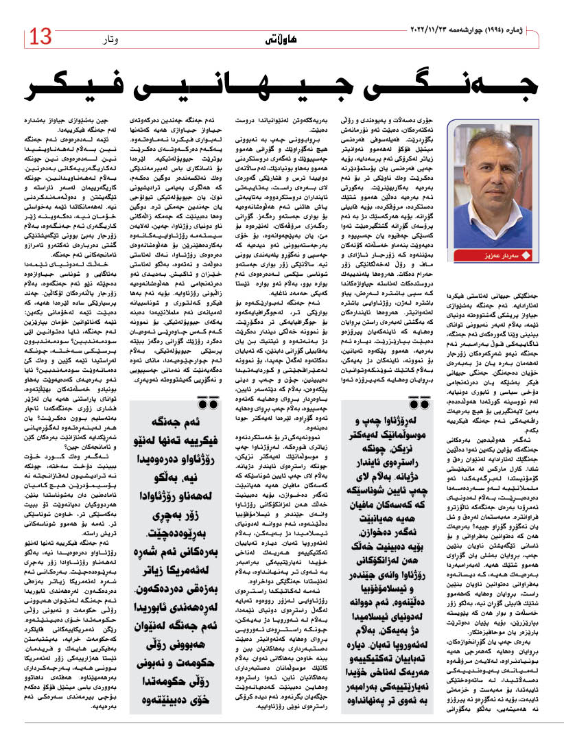 ئێمە لەدەرەوەی ئەم جەنگە نین. بەڵام لەهەناویشیدا نین. لەدەرەوەی نین چونكە لەكاریگەرییەكانی بەدەرنین. بەڵام لەهەناویدانین، چونكە كاریگەرییمان لەسەر ئاراستە و تێگەیشتن و دەوڵەمەندكردنی نیە. لەهەمانكاتدا ئێمە بەخواستی خۆمان نیە، دەكەوینە ژێر كاریگەری ئەم جەنگەوە، بەڵام زۆرجار بەبێ بوونی تێگەیشتنێكی گشتی دەربارەی ئەكتەرو ئامرازو ئامانجەكانی ئەم جەنگە.