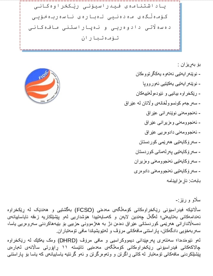 یاداشتنامەی فیدراسیۆنی رێکخراوەکانی کۆمەڵگەی مەدەنیی لەبارەی ناسەربەخۆیی دەسەڵاتی دادوەریی و نەپاراستنی مافەکانی تۆمەتباران
