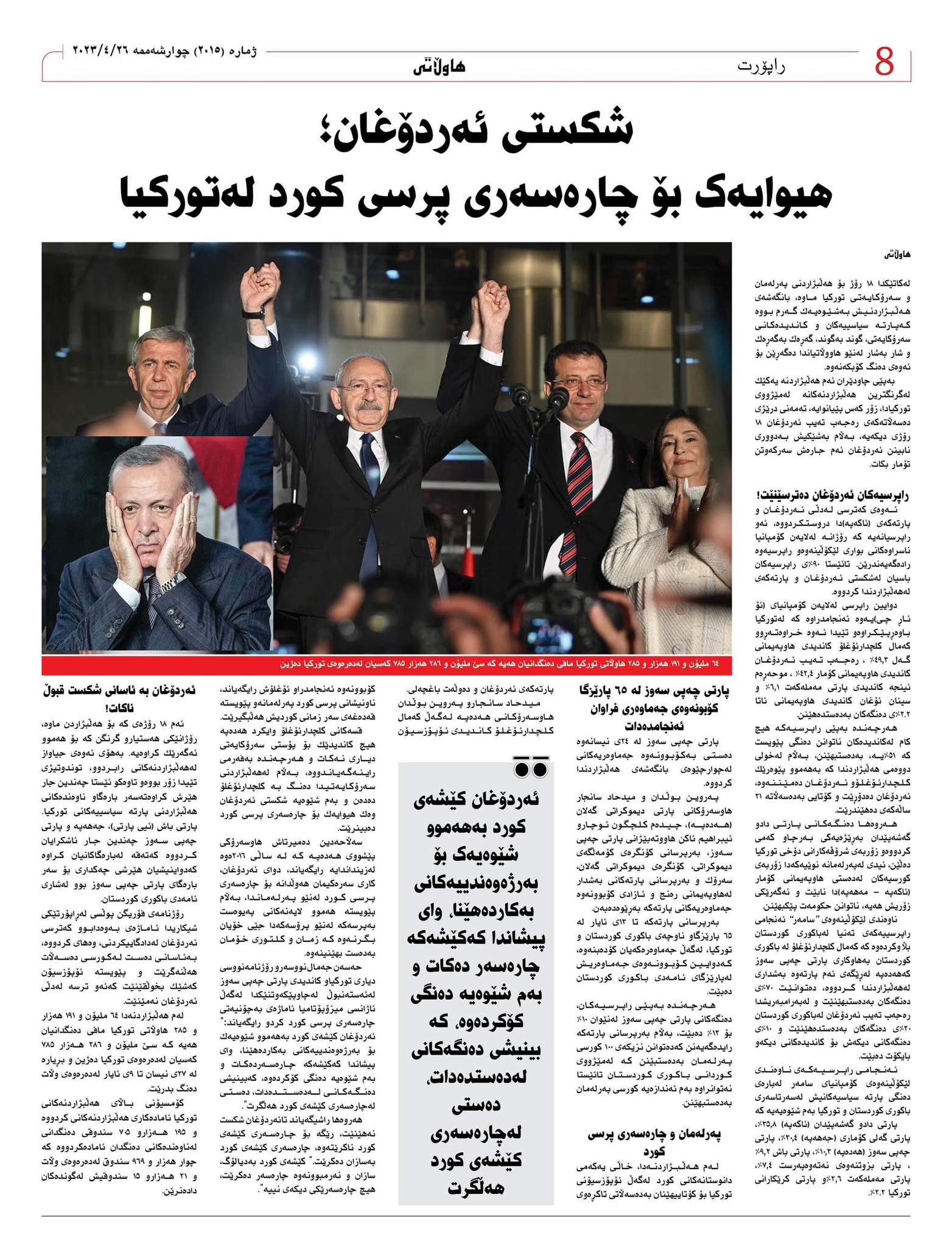 لەم هەڵبژاردنەدا، خاڵی یەكەمی دانوستانەكانی كورد لەگەڵ ئۆپۆزسیۆنی توركیا بۆ كۆتاییهێنان بەدەسەڵاتی تاكڕەوی پارتەكەی ئەردۆغان و دەوڵەت باغچەلی.