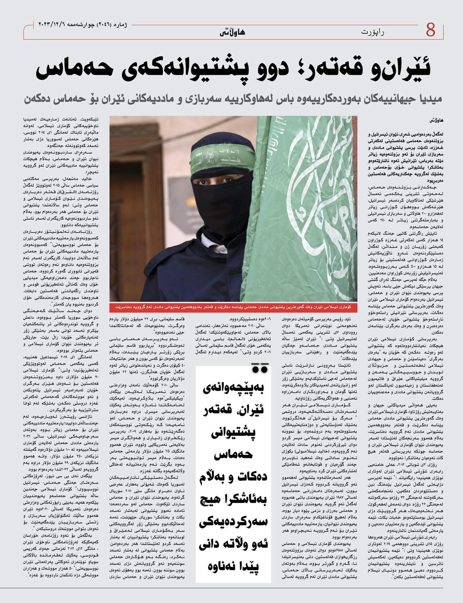 پێگەی ئەی بی سی نیوز، لەڕۆژەکانی سەرەتای جەنگی حەماس- ئیسرائیل نووسیبووی:» کۆماری ئیسلامی چەندین ساڵە پشتیوانی حەماسەو پەیوەندییان پێکەوە هەیە، بەپێی راپۆرتەکانی وەزارەتی دەرەوەی ئەمریکا لەساڵی ٢٠٢٠ەوە ئێران هەموو ساڵێک تەکنۆلۆژیای سەربازی و زانستی سەربازییان پێدەگەیەنێت بۆ ئەوەی بتوانن مووشەک دروستبکەن «.