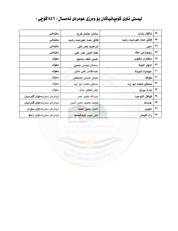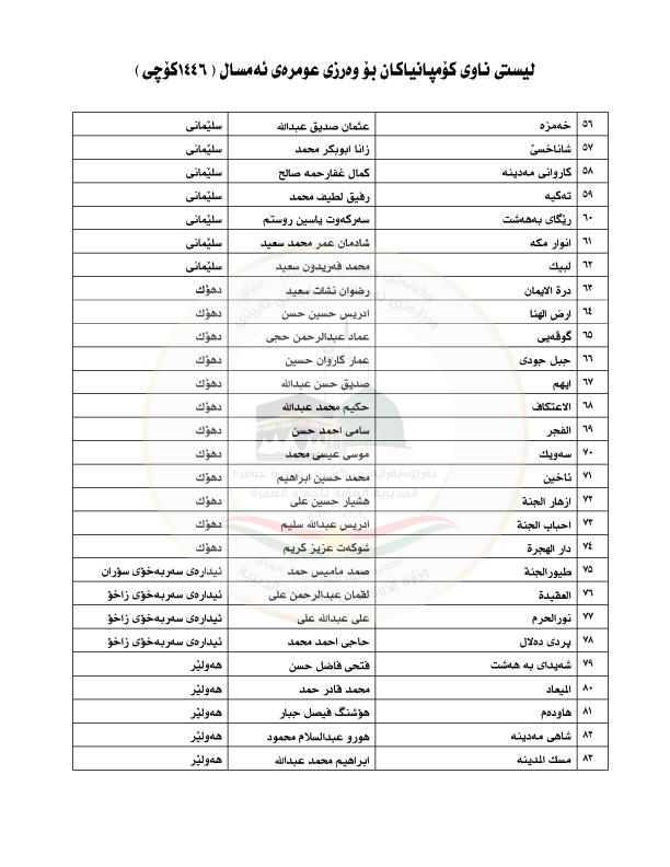 بەڕێوەبەرایەتی حەج و عومرەی هەرێمی کوردستان ناوی 97 کۆمپانیا بڵاودەکاتەوە کە گرێبەستیان لەگەڵ بەڕێوەبەرایەتییەکە هەیە و ڕێگەپێدراون.