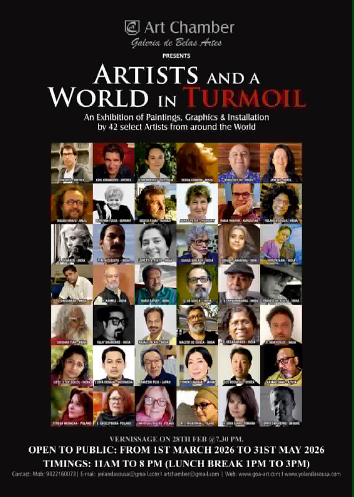 لە کاتێکدا جیهان بەدەست جەنگ و ئاژاوە سیاسییەکانەوە دەناڵێنێت، هونەر وەک ئاوێنەیەک بۆ نیشاندانی ئەم نەهامەتییانە دەردەکەوێت. بڕیارە ڕۆژی ٢٨ی شوبات، لە شاری گوا لە وڵاتی هیندستان، پێشانگایەکی نێودەوڵەتیی جیاواز لەژێر ناونیشانی (جیهان لە ئاژاوەدا - World in Chaos) بکرێتەوە.