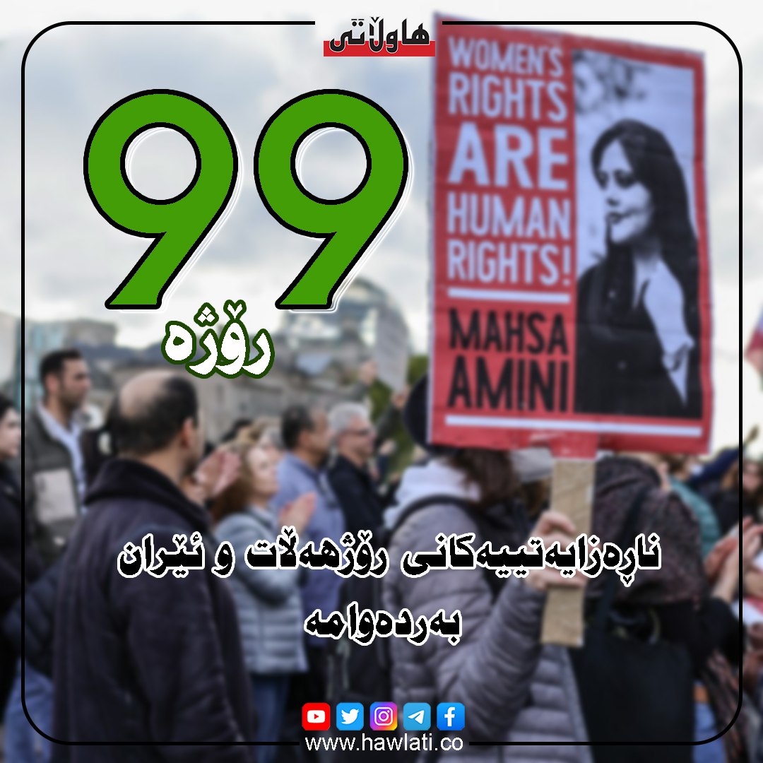 100رۆژ بەسەر مەرگی ژینا ئەمینیدا تێدەپەڕێت و 99 رۆژە ناڕەزایەتییەکانی دوای مەرگی ئەو بەردەوامە ئەمڕۆش لە زانکۆکانی تاران تا شەقامەکانی سنە بە شێوازی جیاواز یادی ژینا و کوژراوانی خۆپیشاندانەکان کرایە و رێکخراوێکیش هۆشداریی دەدات کە 60 دەستگیرکراو مەترسیی لەسێدارەیان لەسەرە. ئەمشەو لە چەند شوێنێکی شاری سنە گەنجان بە کردنەوەی ئاگر وەک شەوانی دیکەی دروشمیان دژی دەسەڵات و دەسەڵاتدارانی ئەو وڵاتە وتەوە شاری سنە مێژوی 100 رۆژ بەردەوامبون لە ناڕەزایەتیی دوای مەرگی ژینا ئەمینیی تۆمار کردوە و بە ناوەندێکی سەرەکیی ناڕەزایەتییەکانی رۆژهەڵاتی کوردستان و ئێران لەقەڵەم دەدرێت و تەنها لەو شارە 18 کەس تا ئێستا کوژراون. هاوکات لەگەڵ سنە خۆپیشاندان لە شاری مەشهەد لە باکوری رۆژهەڵاتی ئێران دەستی پێکردەوە و چەند شار و شارۆچکەیەکی دیکەشی گرتەوە. شەوی شەممە لە چەند شەقامێکی تارانی پایتەخت و لە شارە گەورەکانی وەک ئەسفان و کەرەج و قەزوێن دەستی پێکردەوە و گردبونەوەی ناڕەزایەتی و رێپێوانی جەماوەریی لەو شارانە بەڕێوەچو. لە شاری کەرەج سەرەڕای بەفربارین و کەشی سارد رێپێوانی بەرفراوان بەڕێوچو کە بە رێپێوانی بێدەنگی ناودەهێنرێت و سەدان کەس پێکەوە رێپێوان دەکەن وەک ئاماژەیەک بۆ دەربڕینی ناڕەزایەتی. رۆژی شەممە لە وڵاتانی ئەمریکا، ئەڵمانیا، دانیمارک و تورکیا خۆپیشاندان و گردبونەوەی بەرفراوانی ناڕەزایەتیی دژی کۆماری ئیسلامی ئێران بەڕێوەچو. یەکێتی خوێندکارانی زانکۆ لە ئێران رۆژی شەممە ئاشکرای کرد لانیکەم 300 خوێندکاری زانکۆ سزای زیندانیان بەسەردا سەپێنراوە بەڵام دادگاکانی وڵاتەکە ئەو سزایانە ئاشکرا ناکات بە پێی ئامارەکان زیاتر لە دو هەزار خوێندکاری زانکۆ لە ناڕەزایەتییەکانی رۆژهەڵاتی کوردستان و ئێران دەستگیر کراون. دادگای باڵای ئێران رایگەیاند پێداچونەوە بۆ سزای سێدارەی سامان سەیدی (یاسین) دەکات و هاوکات پێداچونەوە بۆ سزای سێدارەی محەمەد قوبادلو دەکات. یاسین کە هونەرمەندێکی شاری کرماشانە پێشتر وەک ناڕەزایەتییەک بە ئامادەکاریی بۆ جێبەجێکردنی سزاکەی لە زیندان بە خواردنی حەب هەوڵی خۆکوشتنی لە زیندان دا و دواتر رەوانەی نەخۆشخانەکرا. ناوەندی هەرانا بۆ مافەکانی مرۆڤ بڵاوی کردەوە تا ئێستا 60 کەس مەترسیی لەسێدارەدانیان لەسەرە و جێبەجێکردنی سزای 11 کەسیشیان لە ئان و ساتدایە. لە لایەکی دیکەوە سزای چوار سال زیندانیی بەسەر پارێزەرێکی دۆسیەی هەینی خوێناوی لە پارێزگای سیستان و بەلوچستان سەپێنرا. مستەفا نیلی، پارێزەری دۆسیەی کوژراوانی زاهیدان لە پارێزگای سیستان پێش گەیشتنی بەو پارێزگایە لە فڕۆکەخانەیەکی شاری تاران دەستگیر دەکرێت و دوای ماوەی زیاتر لە سێ هەفتە دەستبەسەربون لە لایەن دادگایەکی ئێران چوار ساڵ زیندانی بەسەردا سەپێنرا، ئەوەش لە کاتێکدایە دادگاکانی ئێران خۆیان دەستنیشانی دەکەن چ کەسێک پارێزەری دۆسیە یان دەستگیراوانی ئەم دواییانە بێت و رێگریی لە پارێزەرانی تایبەت دەکرێت کە ئامادەیی خۆیان بۆ پارێزگاری لە دەستگیرکراونی ناڕەزایەتییەکان دەربڕیوە. لە سەرهەڵدانی ناڕەزایەتییەکان تا ئێستا 44 پارێزەر لە ئێران بە تۆمەتی پشتیوانیی نایاسایی لە ناڕەزایەتییەکان و دەستگیرکراوان ، دەستبەسەر کراون. تۆمارێکی ڤیدیۆیی نوێی موژگان کاوسی، خانمە نوسەر و تێکۆشەری کورد بڵاو دەکرێتەوە کە بەشێوازێکی پڕ لە هەست تەنبور دەژەنێت. ئەو خانمە کوردە کە هاوکات یەکێک لە تێکۆشەرانی خوێندن بە زمانی دایک، تا ئێستا چەند جارێک بۆ نزیکەی سێ ساڵ زیندانیی کراوە و دوای ئازادکردنیشی لە ناڕەزایەتییەکانی دوای مەرگی ژینا دەستگیرکرا و بە پێی ئەو تۆمەتەی لە لایەن دادگایەکی ئێرانەوە دراوەتە پاڵی، سزای سێدارە دەیگرێتەوە. ڤیدیۆیەکی نوێی چۆپیشکێشان و هەڵپەرکێی داریوش عەلیزادە کە لە ناڕەزایەتییەکانی شاری سنە کوژرا و ئاریان موریدی کە سەلاسی باوجانی کوژرا، جارێکی دیکە ئازاری مەرگی ژینا و ئازایەتیی ئەو گەنجانە 