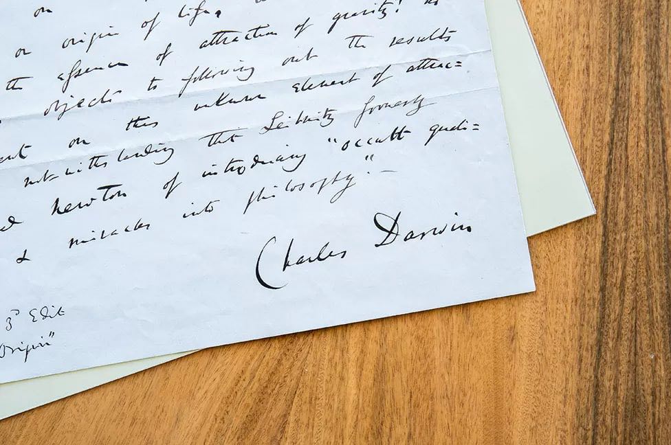 هاوڵاتی دەستنوسێکی واژووکراوی چارلس داروین کە جەخت لەسەر پەرەسەندن دەکاتەوە نرخی پێوانەیی تۆمارکرد و بەبڕی ٧٧٩ هەزار پاوەند لە سۆزێبی فرۆشرا. پارچە کاغەزیکی بەڵگەنامەیی دەستنوسی چارلس داروین کە واژۆی ئەو زانایەی لەسەرە لەکۆتاین داواکاری لە سۆزیبی فرۆشرا بە بڕی٧١٩ هەزار پاوەند کە دەکاتە ٨٨٢ هەزار دۆلار، ئەمەش زۆرترین نرخ بووە کە هەتاوەکوو ئێستا بۆ بەرهەمێکی چارلس داروین درابێت؛ کۆتایین بەڵگەنامەی چارلس داروین کە پێشتر فرۆشرابێت نزیکەی ٤٠٠ هەزار پاوەند بووە. دەستنوسەکە بەڵگەی یەکلاکەرەوەی چارلس داروینە سەبارەت بە بنەڕەتی جۆرەکان وتیۆری پەرەسەندن ،چارلس داروین ئەم دەستنوسەی دوای ٦ ساڵ لە بڵاوبونەوەی کتیبی بنەچەی جۆرەکان بۆ گۆڤاری ناوداران لە ساڵی ١٨٦٥ نوسیبوو، لەکاتەدا باوترین ڕەخنە کە رووبەڕووی دەبۆوە ئەوە بوو کە چارلس داروین تیۆریەکەی نەیتوانیوە بنەچەی جۆری خۆی بدۆزێتەوە. چارلس داروین ئەم داواکاریەی گۆڤارەکەی وەک دەرفەتێک بۆ وەڵامدانەوەی گومانەکانی سەری بەکارهێنا، لەوبارەیەوەش دانی بەوەدا نا کە راستە بەڵام ئەمە پەیوەندی بە بۆچونەکانیەوە نیە لەسەر تیۆری پەرەسەندن وچۆنیەتی فرەیی بوونی جۆرەکان لەسەر زەوی، هەروەک چۆن ئەگەر لە جەوهەری هێزی کێشکردنی نیوتن تێنەگەین، بەڵام بەدڵناییەوە هێزی کێشکردن کاری کردووە وسەلمێنراوە. دەقی دەستنوسەکە:- ئێستا هەموو ڕاستیە گرنگەکان وگریمانەکانم لایە، کە بەتەواوی بڕوایان پێهێناوم کە جۆرەکان لەماوەیەکی دوودریژی ڕەچەڵەکدا بەهۆی پاراستنیان یان هەڵبژاردنی سروشتیەوە گۆڕانێکی زۆر کەم وگونجاوی دوا بەدوای یەکەوە گۆڕانیان بەسەرداهاتووە. پێم وانیە تیۆریەکی هەڵە بەڕاستی ئەوە ڕوون بکاتەوە، وەک ئەوەی کەپێموایە تیۆری هەڵبژاردنی سروشتی ڕوونی دەکاتەوە، وەک چەند بابەتە ڕاستیە گرنگەکان لەسەرەوە دیاری کراون. ئەوە ناڕەزایەتیەکی هەڵەیە کە تاوەکوو ئێستا زانست هیچ تیشکێک نەخاتە سەر کیشەی زۆر باڵای جەوهەر وبنەچەی ژیان. کێ دەتوانێت لە کڕۆکی ڕاکێشانی هێزی کێشکردن بکۆڵێتەوە؟ ئێستا کەس ڕەخنە ناگرێت لە بەدواداچوونەکان بۆ ئەنجامی دەرئەنجامەکانی ئەم پێکهێنەرە نادیارانەی هێزی ڕاکێشان، هەروەک چۆن پێشتر لیبنیتز نیوتنی بە هێنانی تایبەتمەندی جادوویی وموعجیزە بۆناو فەلسەفە تۆمەتبارکرد.