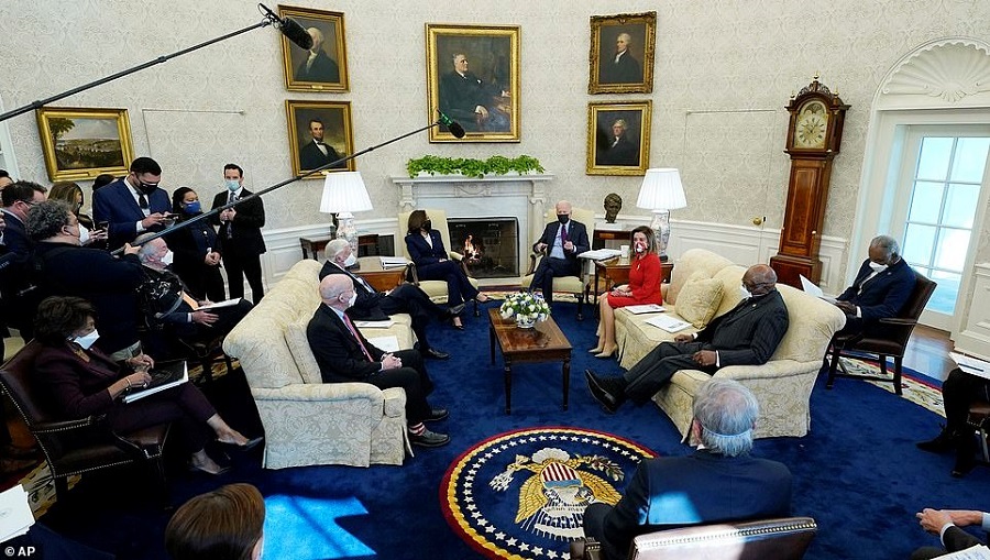 هاوڵاتى دیموکراتهکان ئهو پاکێجه 1.9 ترلیۆن دۆلارییهى که لهلایهن جۆ بایدنهوه بۆ رووبهڕووبوونهوهى کۆرۆنا پێشنیاز کرابوو تێیان پهراند بهبێ کۆمارییهکان. له ئهنجوومهنى پیران به 51 دهنگى بهڵێ بهرامبهر 50 دهنگى نهخێرى کۆمارییهکان، رێگه یاساییهکهیان پهسندکرد و پاکێجه داراییهکهى بایدنیان له رهتکردنهوه رزگارکرد. کاملاهاریس، جێگرى سهرۆکى ئهمریکا رایگهیاند: "ئهنجامى ئهم دهنگدانه 50 دهنگى بهڵێ و 50 دهنگى نهخێره، ئهنجوومهنى پیران به یهکسانى دابهشبووه، دهنگى جێگرى سهرۆک بهڵێیه، کهواته ههموارکردنى ئهم پرۆژهیاسایه پهسندکرا." سهرۆکى ئهمریکا دهیهوێت ههروهکو چۆن پێش ههڵبژاردن بهڵێنى دابوو ئهگهر کهسێک داهاتى ساڵانهى له 75 ههزار دۆلار کهمتر بێت ئهوا جگه لهو 600 دۆلارهى که پێشتر وهکو هاوکارى وهریدهگرت، 1400 دۆلارى دیکهشى پێ بدرێت. ههر خێزانێکیش داهاتى ساڵانهى له 150 ههزار دۆلار کهمتر بێت، 4000 ههزار دۆلار وهربگرن. جۆ بایدن، سهرۆکى ویلایهته یهکگرتووهکانى ئهمریکا رایگهیاند: "پاکێجهکه مووچه بهرز دهکاتهوه، پاکێجهکه گهوره و باشه، وهڵامێکى راستهقینهیه بۆ ئهو قهیرانهى که تێیکهوتووین". ههروهها راشیگهیاند:"پلانهکهم زیاتر له ههر پلانێکى دیکه ههلى کار دهڕهخسێنێت، گهشهى ئابوورى دروست دهکات له تهواوى جیهاندا بهتواناتر دهبین". ئێستاش پاکێجهکه دهگهڕێنرێتهوه ئهنجوومهنى نوێنهران بۆ ئهوهى بڕیار لهسهر ئهو گۆڕانکارییانه بدرێت که له ئهنجوومهنى پیراندا تێیدا کراون و دواى ئهوهش لیژنه جیاوازهکانى کۆنگرێس دهست به جێبهجێکردنى پلانهکه دهکهن.